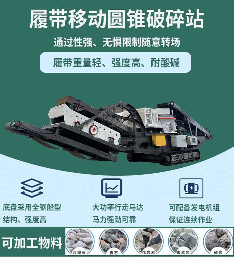 3、主機(jī)配置液壓圓錐破碎機(jī),產(chǎn)量高;