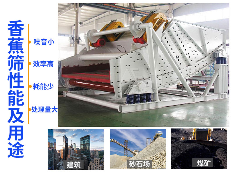 香蕉篩其實就是形狀像香蕉的振動篩。振動篩是篩分設備,該設備在振動的篩板上輸送材料,使尺寸小于篩孔的材料通過篩板,同時機繼續輸送未通過篩板的材料,直到材料派出端部為止,從而實現物料的分級、脫水、脫泥、脫介的目的。