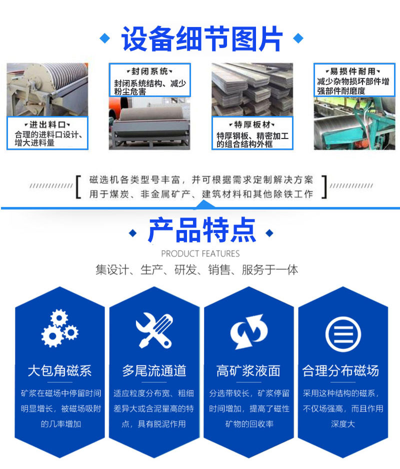 為您提供項目設計、工藝流程設計,適合您的機器設備選購方案的制定,根據您的特殊需求,設計制造產品,為您培訓技術操作人員。陪您一起完成對設備的驗收,協助擬訂施工方案和詳細流程,公司派技術人員到現場指導設備安裝、調試現場及培訓操作人員。鄭州中意磁選機廠家生產的系列磁選機產品具有結構簡單、處理量大、操作方便、易于維護、價格優惠等優點,歡迎廣大客戶在線咨詢。