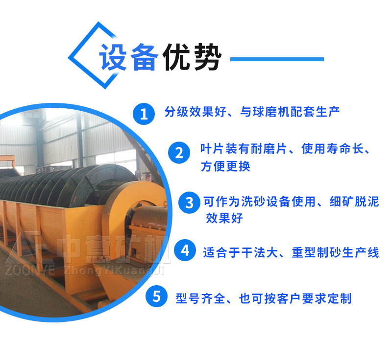 螺旋分級機廣泛適用于選礦廠中與球磨機配成閉路循環程分程分流礦沙,或用在重力選礦廠中來分級礦砂和細泥,及金屬選礦流程中對礦漿進行粒度分級,及洗礦作業中的脫泥、脫水等作業。