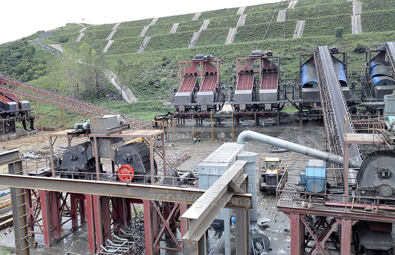 主要裝置有:給料機,顎破,皮帶機,反擊破,振動篩,返料篩,發(fā)電機等。